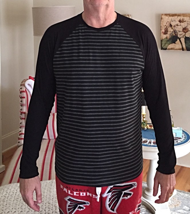 G liked the henley I made for him for Independence Day , and shortly after that he started asking for a henley. It took me a while, but I finally got around to it. Jalie Nico is a raglan-sleeved t-shirt for men and boys. It’s SUPER easy and fast. A great choice when you’re starting to sew a Christmas gift at 2 pm on December 24.