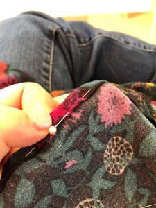 The hem was finished by hand. This fabric bounces back so it wouldn’t hold a press which would have made the hem a mess had I stitched it on a machine.