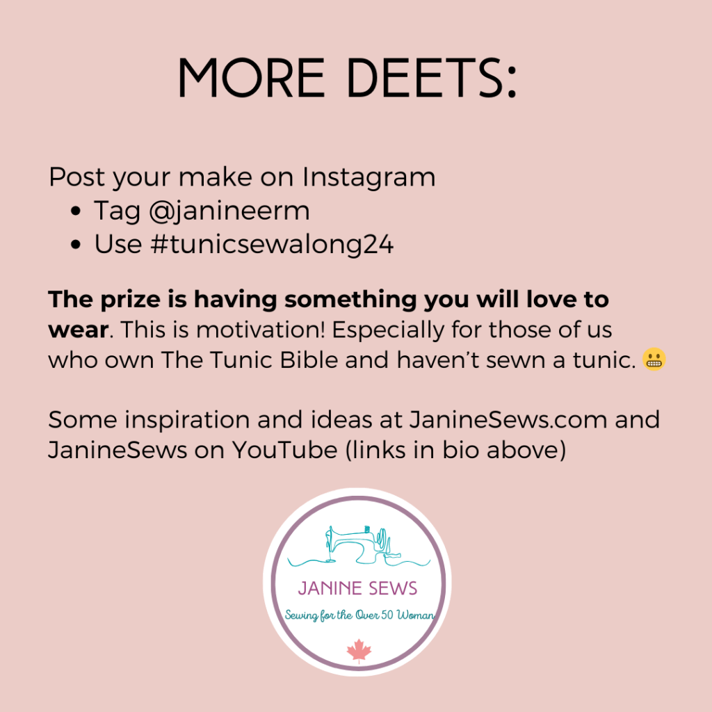 You’re welome to post your tunic on Instagram using the hashtag #tunicsewalong24 and tag me so I can see your make! My name is janineerm on Instagram.